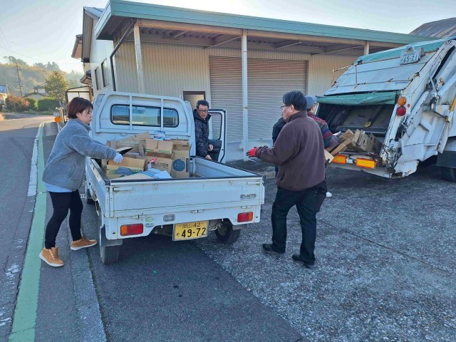 寒い中ではありましたが、保護者や地域の方々がお持ちの資源を届けに回収場所へ来てくださいました。