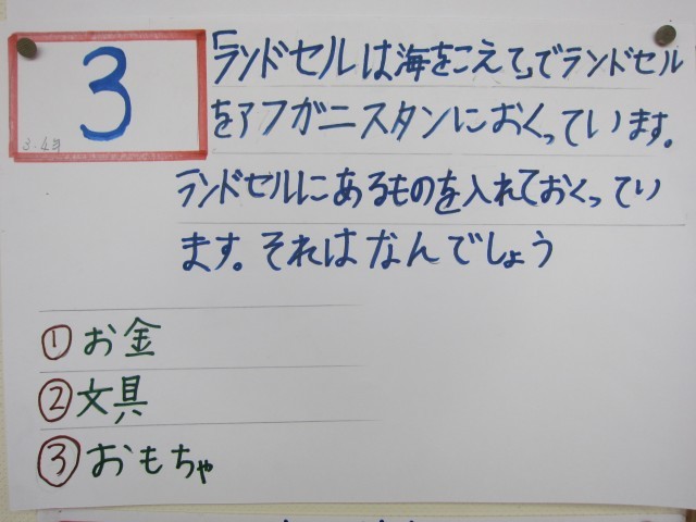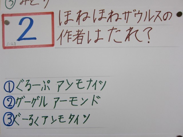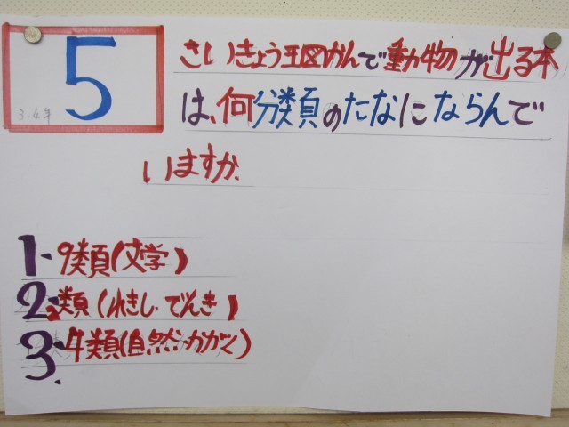 今週は、図書委員かによるクイズが、図書室前の掲示板に掲示されています。