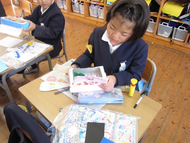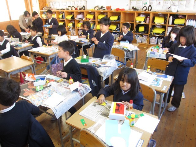1年生は、図工の時間に「うきうきボックス(たいせつボックス)」を製作していました。