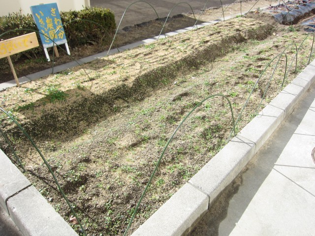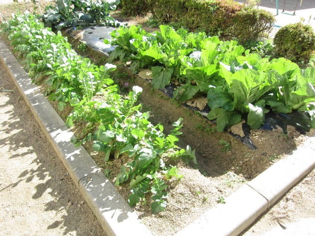 いきいき・さわやか学級の花壇では、この寒さの中ではありますが野菜が順調に成長しています。