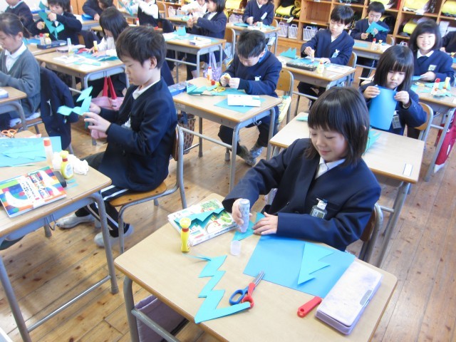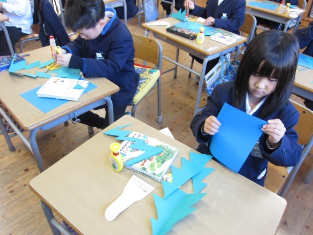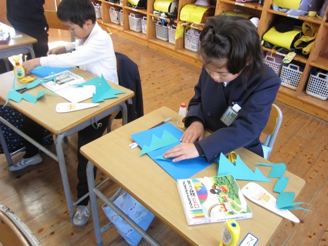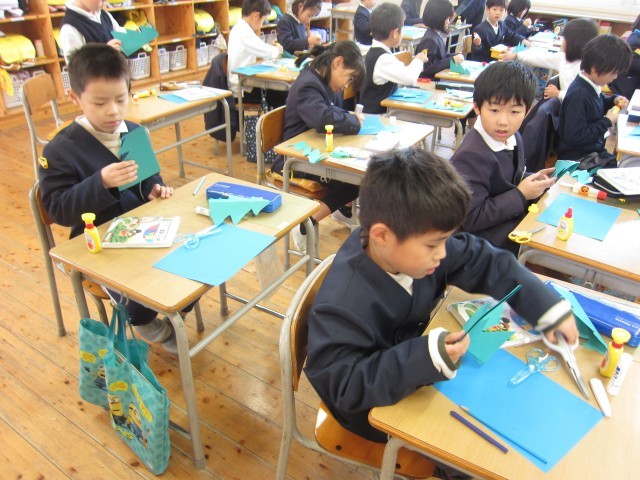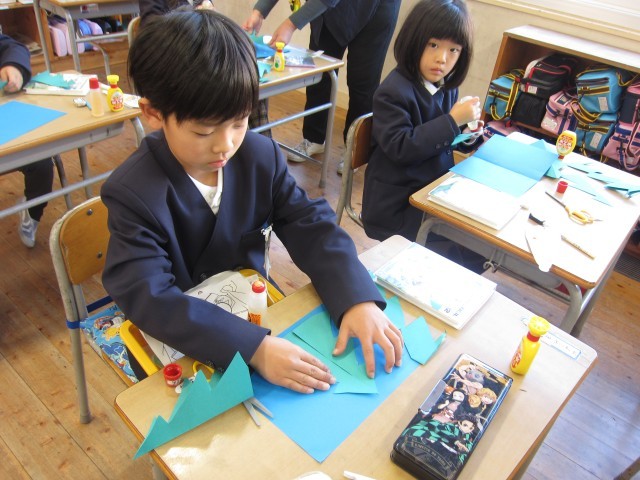 1年生は、図工の時間に「クリスマスカード」を作っていました。
