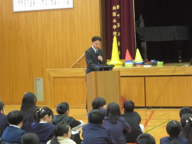 1月の全校朝の集いでの学校長のお話は、「季節のお話」でした。