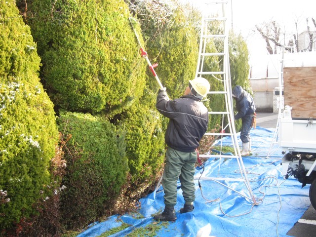 寒い中ではありますが、津山市シルバー人材センターの方々が、敷地内の剪定作業に来られました。
