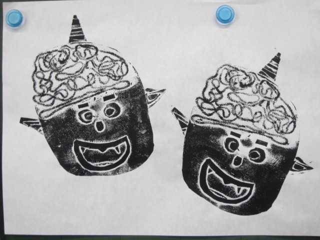 授業の様子(1年生) 公開日 2026/02/06 更新日 2026/02/06 お知らせ 1年生は、初めての紙版画に挑戦しています。「鬼」をテーマに作品を仕上げました。先生達もサポートしながら、素晴らしい作品が完成しています。2月19日(木)の参観日には、保護者や地域の方々に見ていただけます。 +7