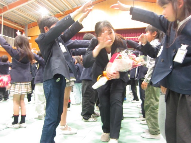 体育館のお見送りでは、子ども達や教職員が大泣きで、会場がかなりざわつき状態でした。