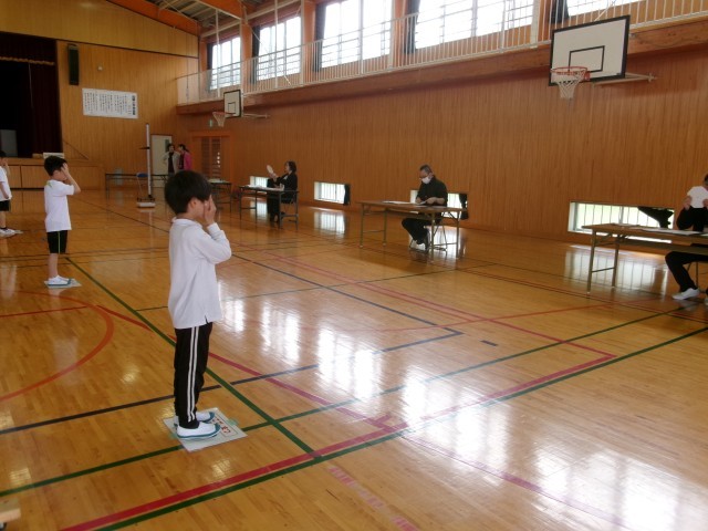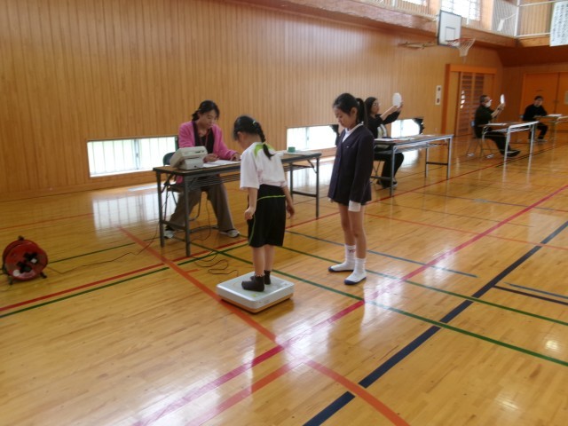 体育館で、身長と体重と視力検査の3か所に分かれて行いました。どの学年も静かに待って、きちんと測定をすることができていました。6年生が優しく1年生のお世話をしてくれました。測定が終わっても、静かに待っていました。素晴らしい態度で感心しました。