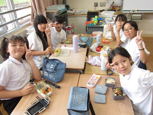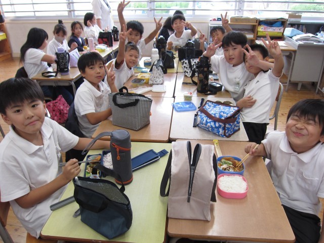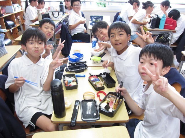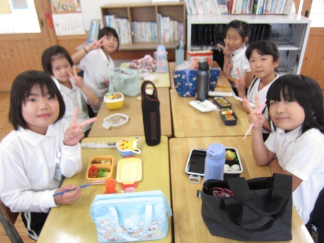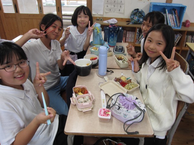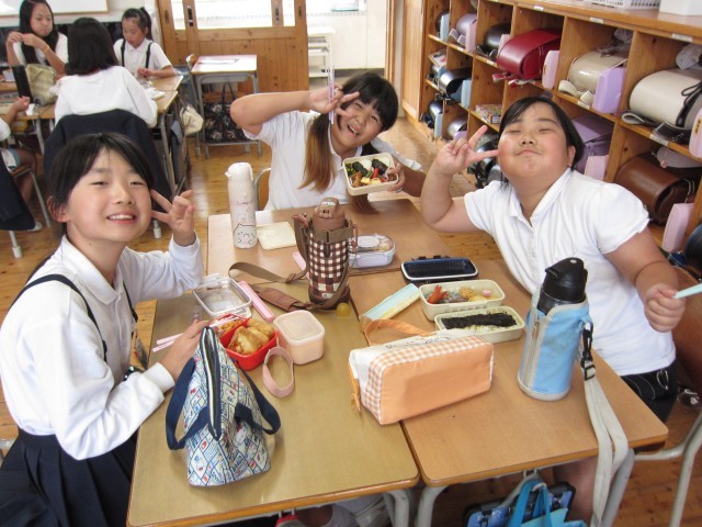 3~5年生は、教室で美味しいお弁当タイムでした。