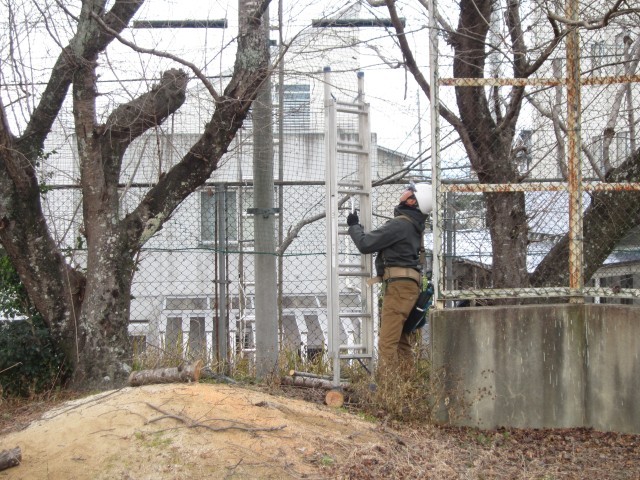 老朽化した本校の桜の枝が折れたり、台風で破損したりする状況を鑑みて今回の作業になっています。