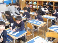 朝から1年生の教室では、朝の歌(3月の課題曲は、変わらないもの)を元気に歌っていました。