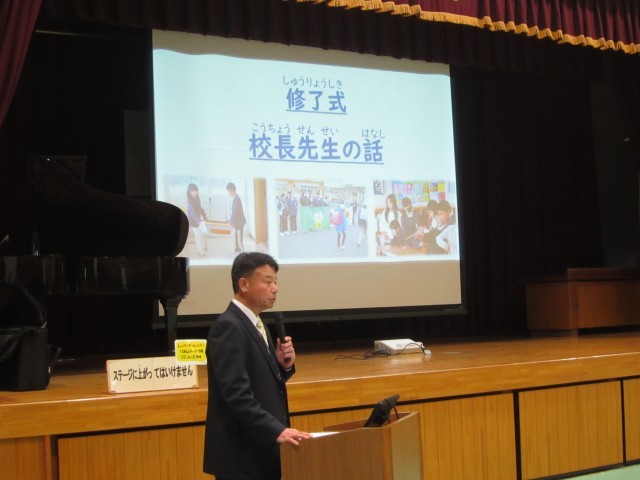修了式に学校長からは、 ①修了おめでとうございます(がんばったで賞) ②1年間を...