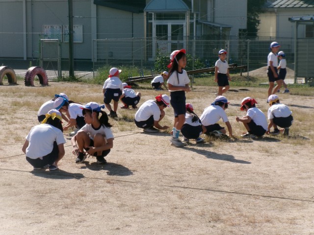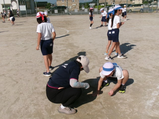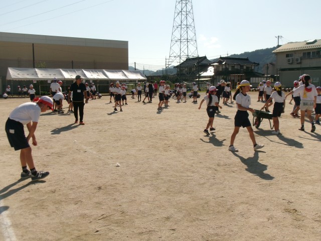 全校練習の後のわずかな時間を使って、全校でグラウンド整備に取り組みました。
