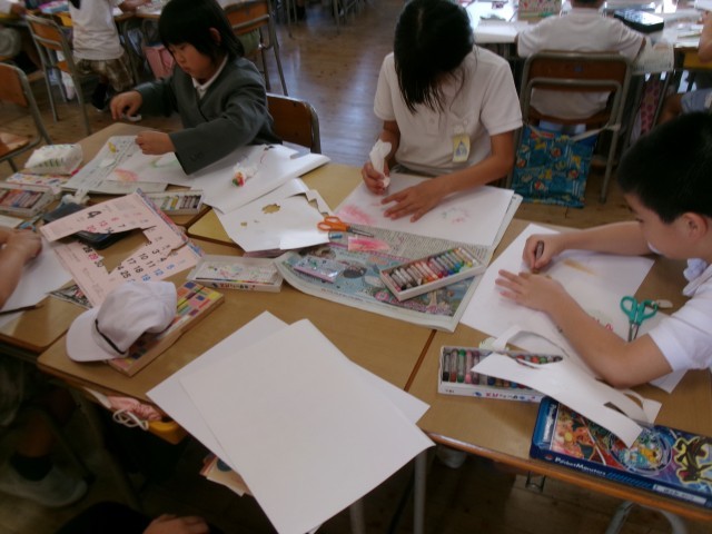 一人ひとりの発想が光り、教室の中が色とりどりの素敵な雰囲気に包まれました。完成が楽しみです!