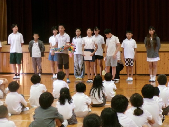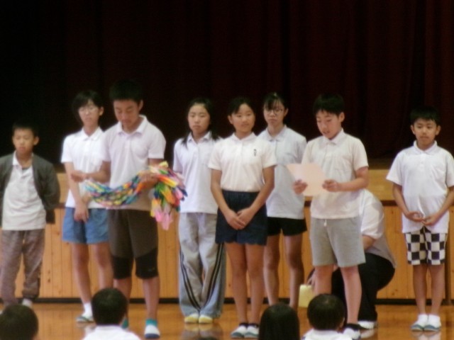 平和への願いを込めて折った折り鶴、協力してくれた全校の皆さんに感謝の気持ちを伝えてくれました。