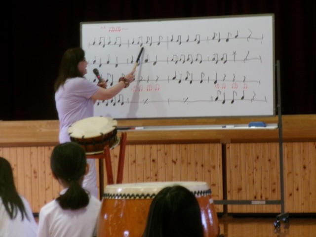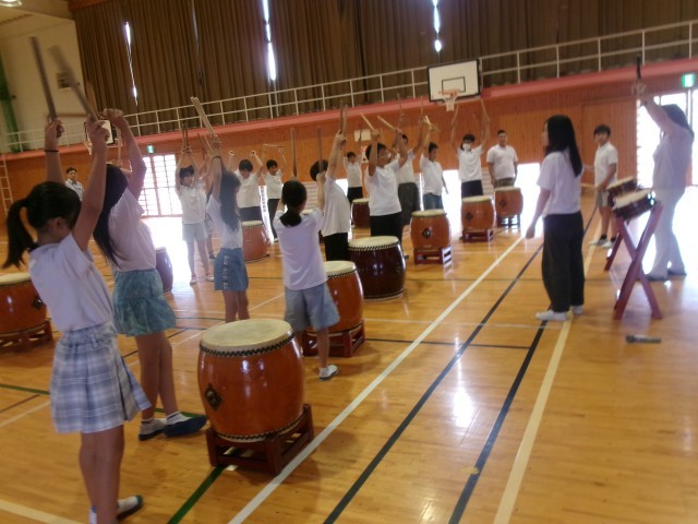 今回は新しい曲にも挑戦し、力強い太鼓の音が体育館いっぱいに響き渡りました。