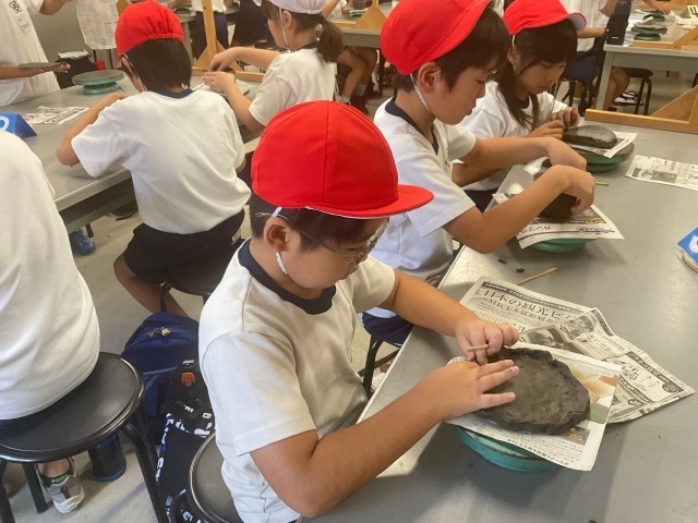 土の感触を楽しみながら、世界に一つだけの作品を仕上げました。