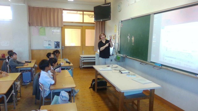 3年生の子どもたちは、外国語に触れ、楽しく授業を受けていました。