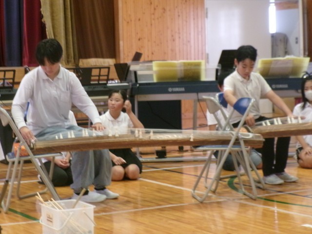 6年生は、学習発表会で「忠義桜」「箏の演奏」「合奏」を発表します。