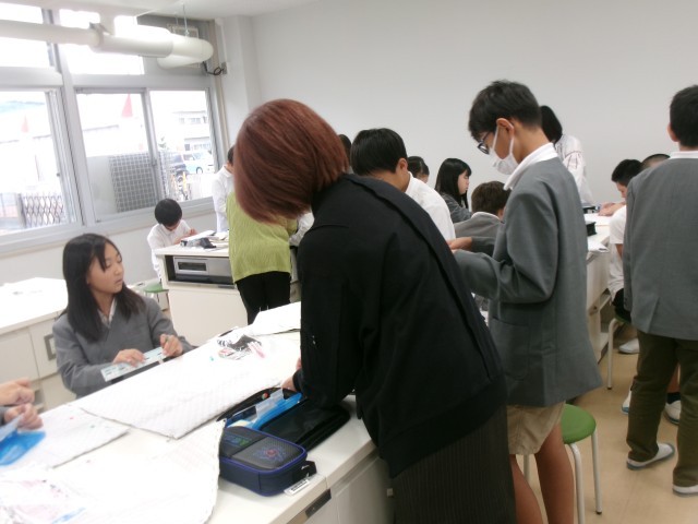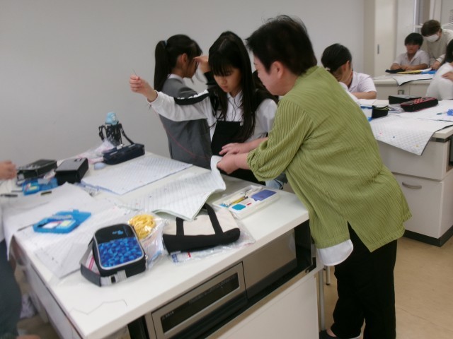 5年生は家庭科でナップサック作りに取り組んでいます。
