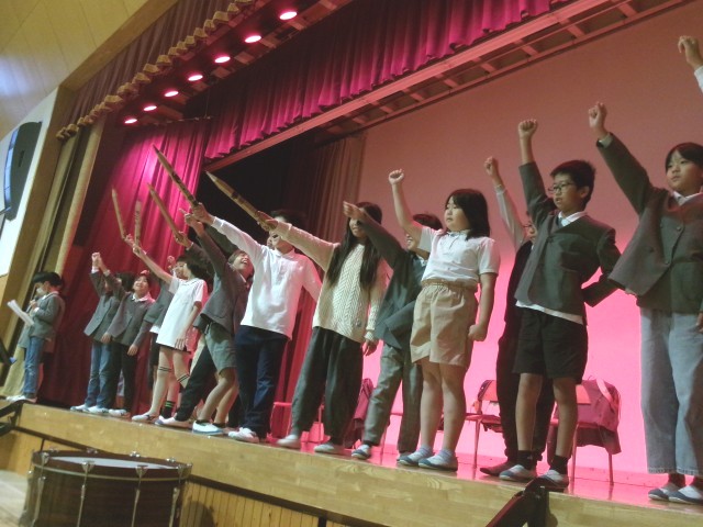 4年生は、学習発表会に向けて、劇から合奏までを通しての練習を行いました。