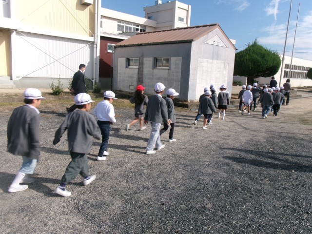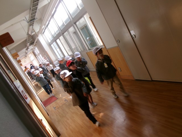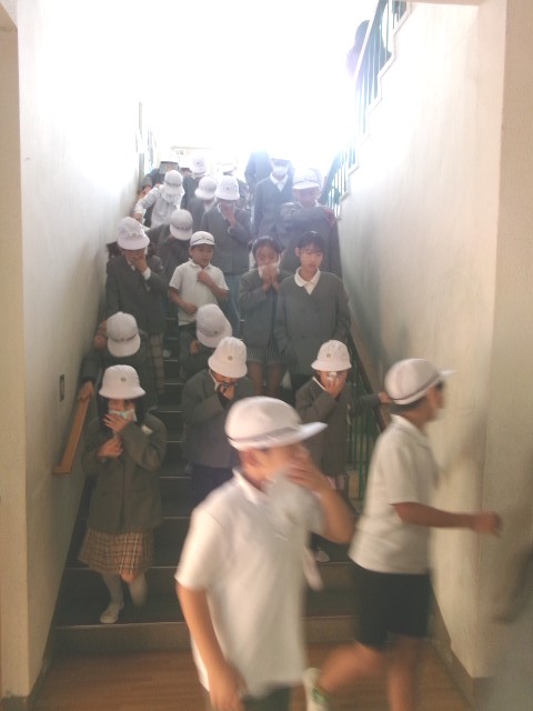 非常ベルが鳴ると、子どもたちは放送の指示に従って、静かに、そして素早く行動しました。