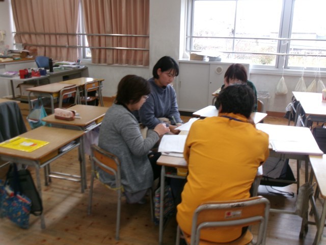放課後、校内研修として、2年生が11月26日に行う公開授業「かさこじぞう」の指導案検討を行いました。