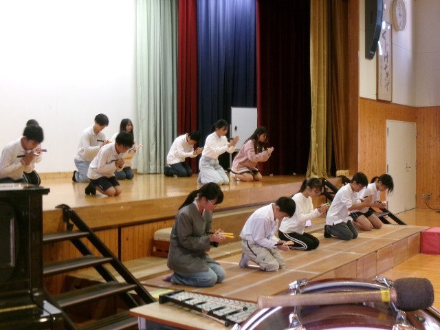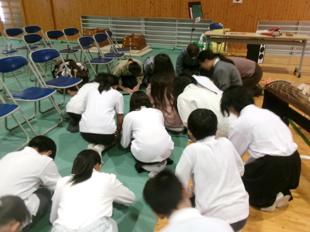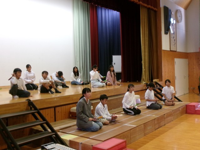 6年生は、学習発表会に向けて「忠義桜」の練習を行いました。