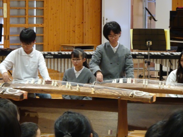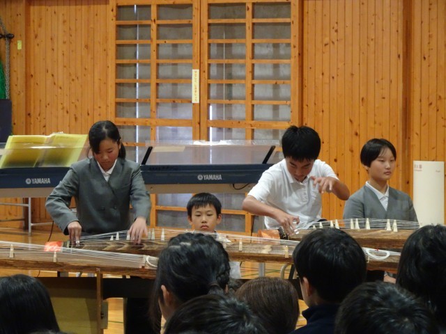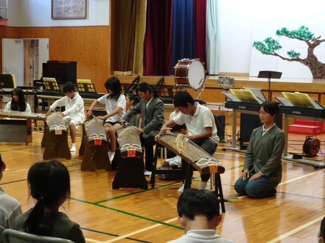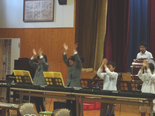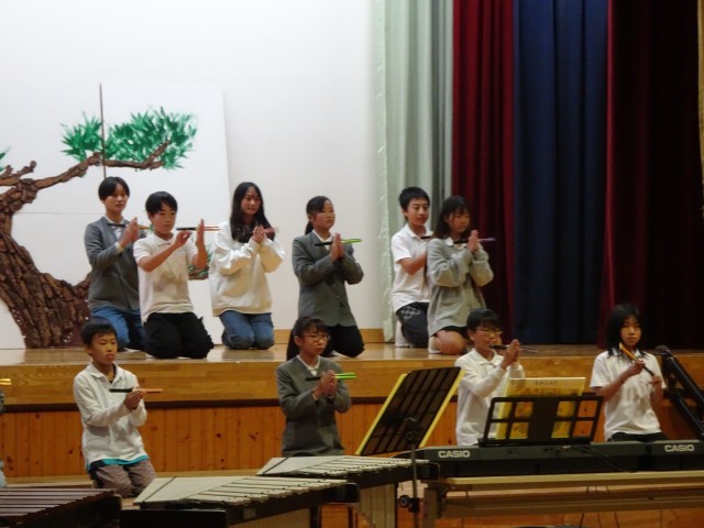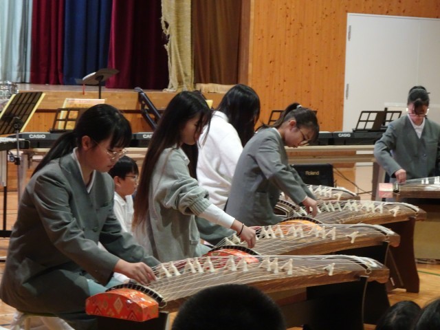 まさにその言葉のとおり、6年生は小学校生活の集大成として、舞踏「忠義桜」、箏合奏「さくらさくら」、そして合奏「銀河鉄道999」を披露しました。