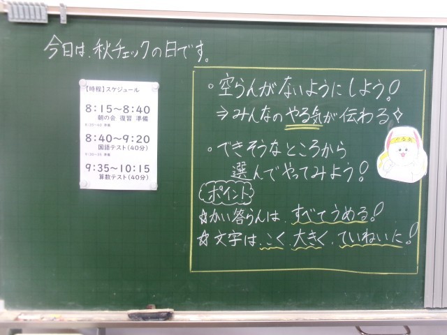 秋チェックを単なるテストとしてではなく、「子ども一人一人の成長を支えるための大切な時間」と捉え、教師自身が授業の質を高めようと取り組む姿勢が、教室の雰囲気をさらに引き締めてくれました。