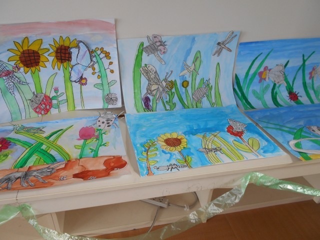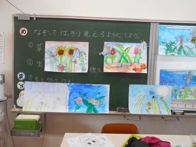 下書きから色塗りまで丁寧に進め、羽根の透明感や細い線の重なりまでこだわった作品が並ぶ教室は、まるで虫たちが動き出しそうなほど生き生きとした世界になっています。