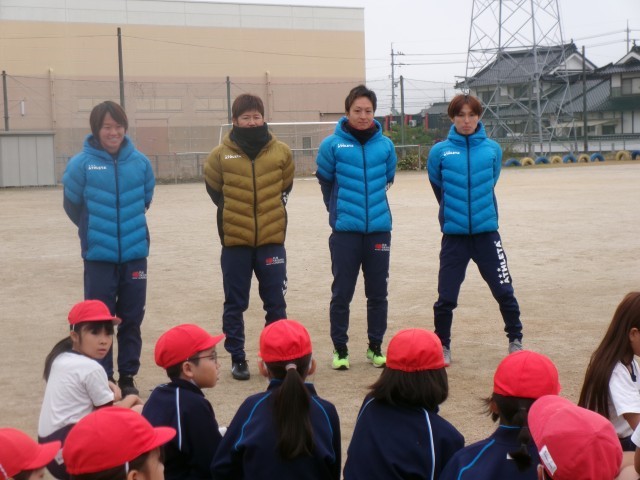 1月20日2校時目、「晴れの国トップアスリート派遣事業」の一環として、湯郷Bellの選手・監督の皆さん4名が来校してくださいました。