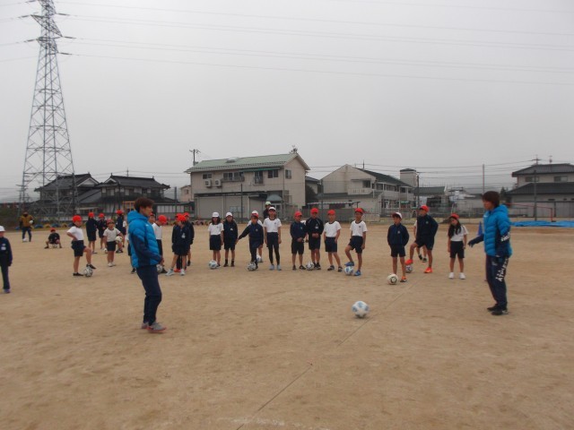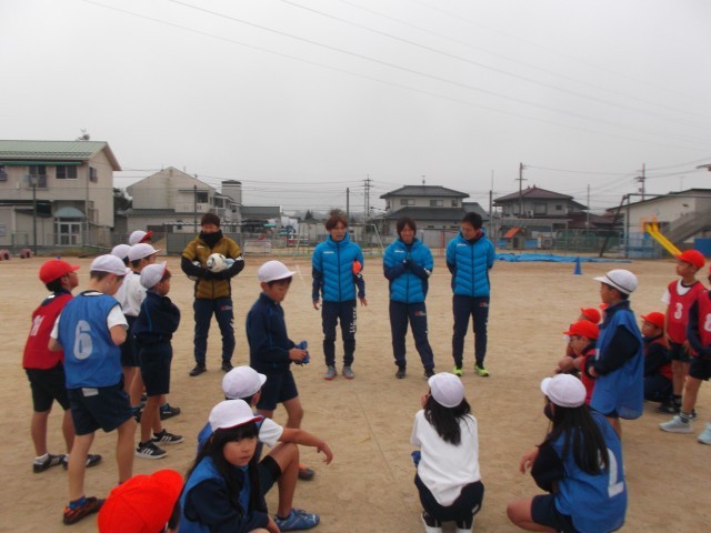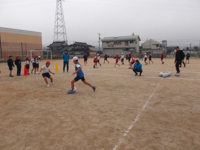 3・4年生を対象に、ウォームアップから始まり、プロ選手による実技指導を交えたトレーニングを行っていただきました。