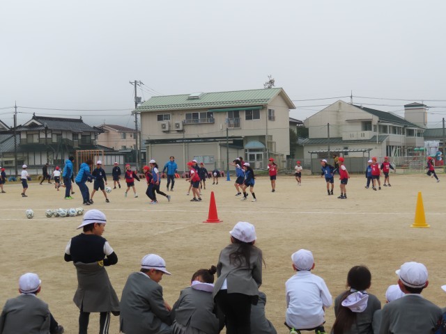 対象は5・6年生で、ウォームアップや実技練習を通して、プロの技に触れながら楽しく体を動かしました。
