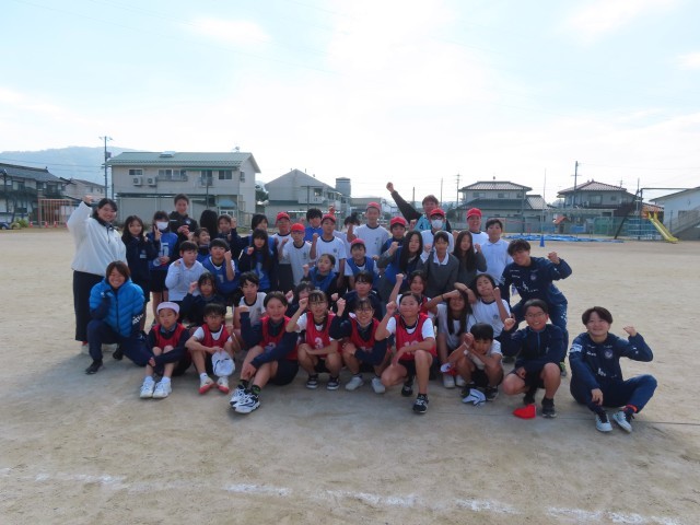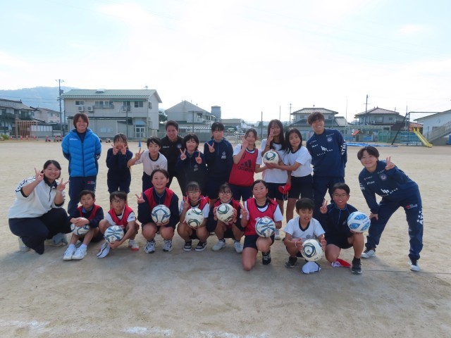 背番号40番・西部茉優選手、背番号34番・三田一紗代選手、背番号5番・内田好美選手の丁寧な指導に、児童は目を輝かせながら挑戦し、触れ合いの時間も大いに盛り上がりました。