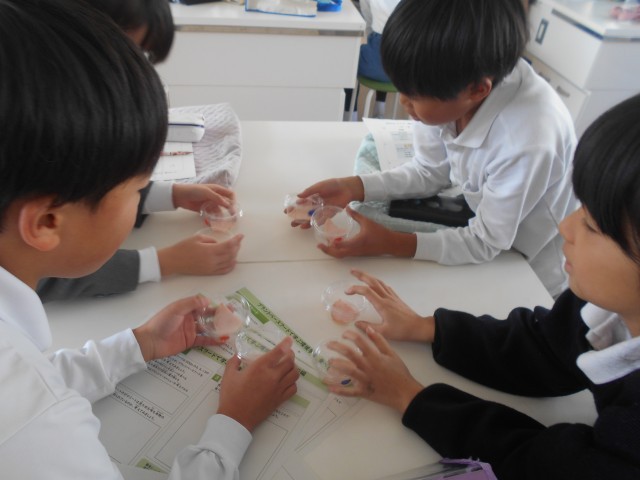 実際のサンプルを見たり、簡単な実験も行いながら、その仕組みを確かめました。