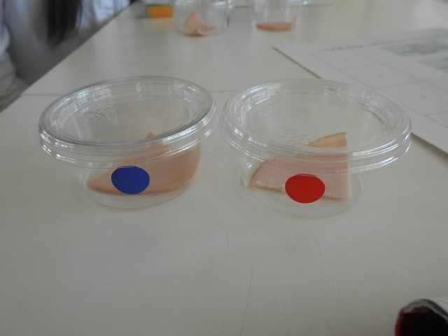 子どもたちは、大豆をもとに作られた“大豆ミート”や“ゼロミート”と呼ばれる食品が、どのようにしてお肉に近い食感や味を生み出しているのかに興味津々。