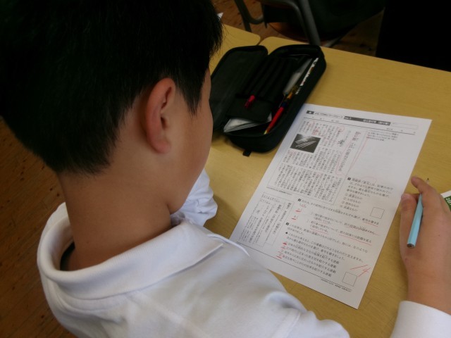 4年生以上が継続して取り組んでいる「よむYOMUワーク」の「解き方スキル」学習。