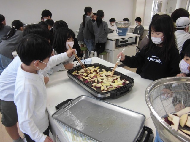 できあがったさつまいもは大人気で、子どもたちは「おいしい!」と笑顔で頬ばっていました。