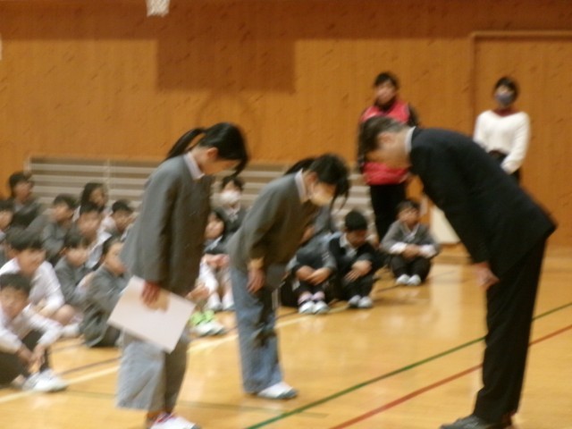 はじめに校長先生から、ひとつ目「2学期の締めくくりも協力戦でしっかり行うこと」、ふたつ目「安全第一で学校生活を送ること」についての話がありました。