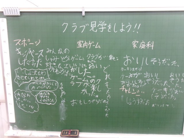 上級生が楽しそうに活動する姿に、子どもたちは目を輝かせ、「早くやってみたい!」「どのクラブに入ろうかな」と、期待に思いを膨らませていました。