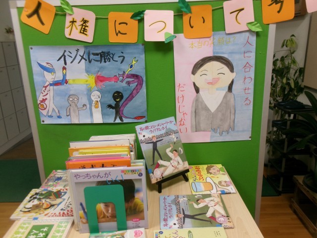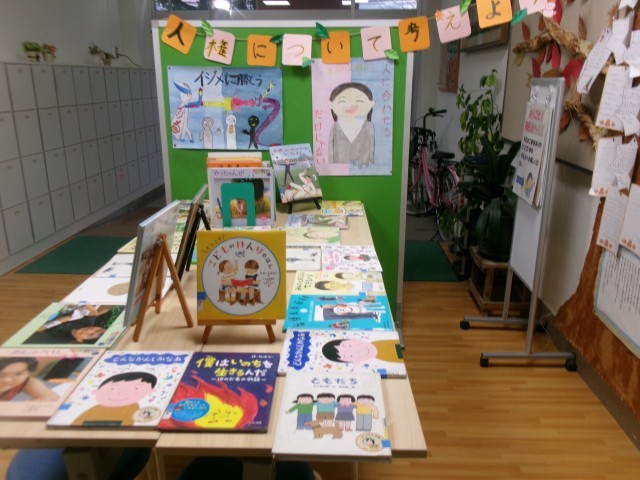 紹介された本を通して、児童が身近なところから人権について考えるきっかけとなるよう工夫されています。