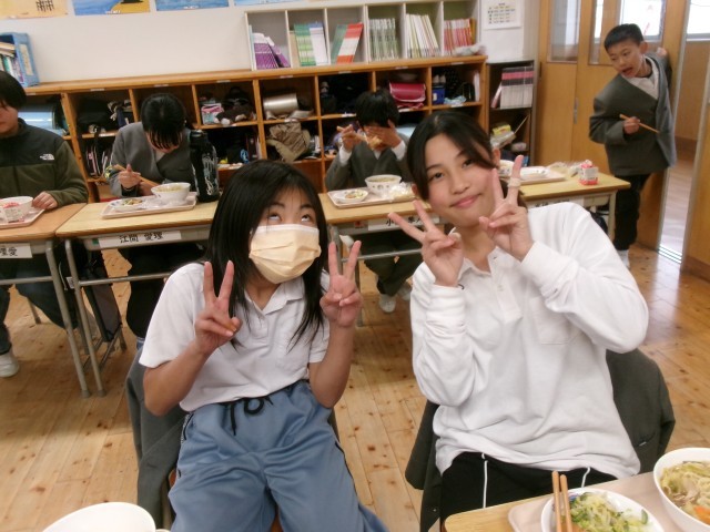和やかでわきあいあいとした雰囲気の中、楽しい給食の時間が流れていました。