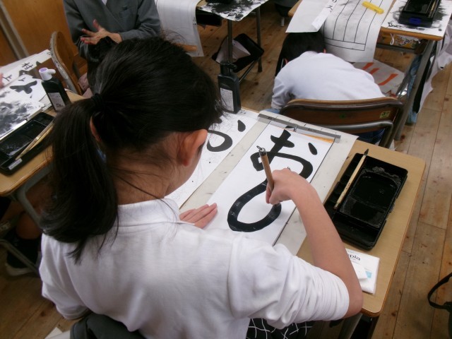 子どもたちは声掛けを受けるたびに何度も書き直し、よりよい字を書こうと意欲的に取り組む姿が見られました。