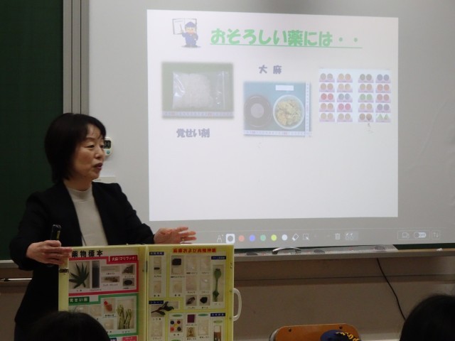 6年生では、津山少年サポートセンターの方に来ていただき、薬物乱用防止教室がありました。