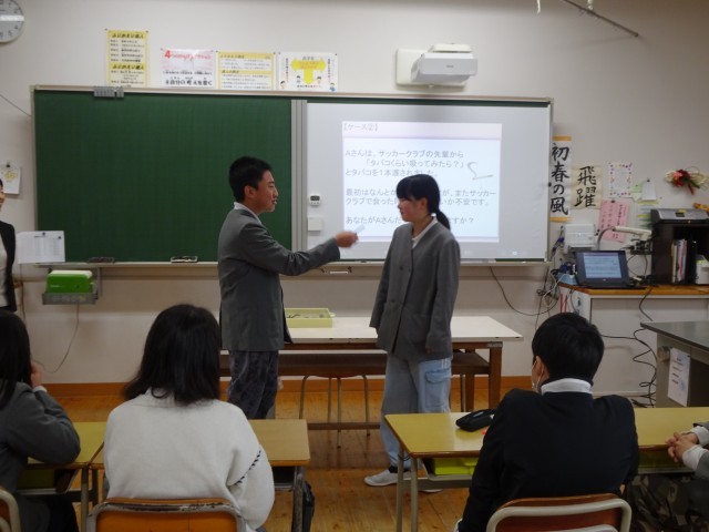 授業の後半には、誘われたときには勇気を持って断ることについても、ロールプレイングを通して体験しました。