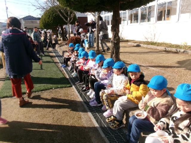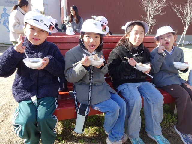また、行事の後には、地域の方々が心を込めて用意してくださった手作りのぜんざいや醤油餅をいただき、体も心も温まるひとときとなりました。