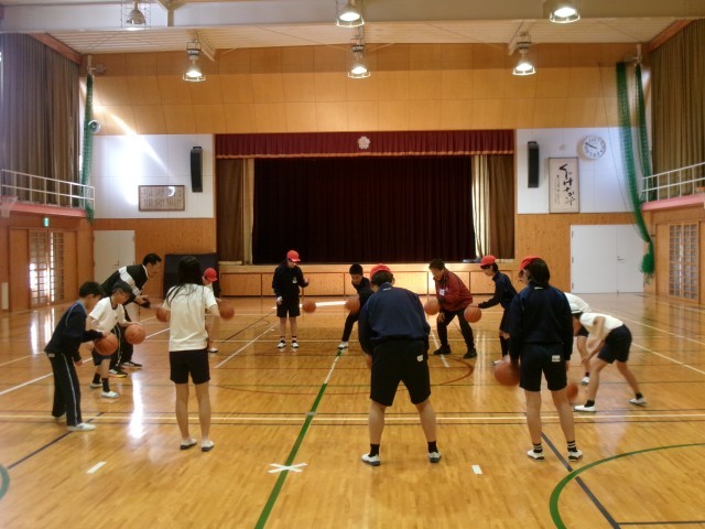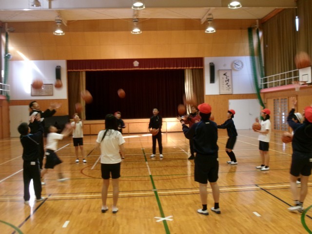 1月22日、「院庄こども元気プロジェクト」の一環として、津田先生による体育の授業が行われ、6年生がバスケットボールに取り組みました。