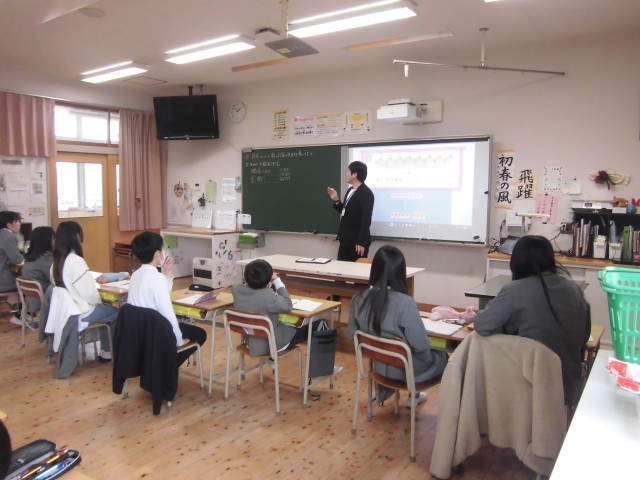 今日の5時間目、津山西中学校の美山先生による数学の出前授業を行いました。