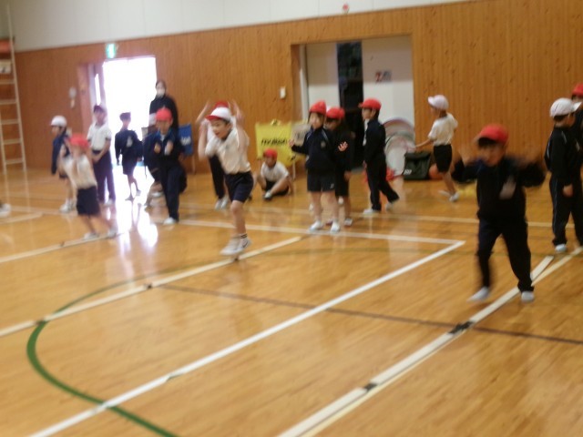 流行りの曲を取り入れた活動で、音楽が流れるたびに体育館は大きな盛り上がりを見せ、子どもたちは大興奮でした。