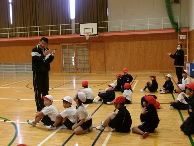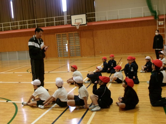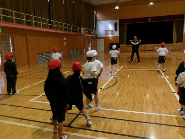 1月28日3時間目、院庄こども元気プロジェクトの一環として、1年生を対象にリズムジャンプの学習を行いました。