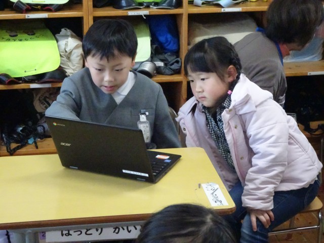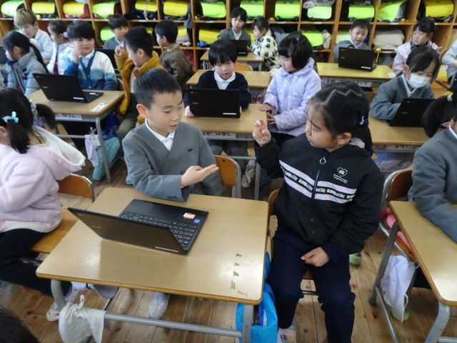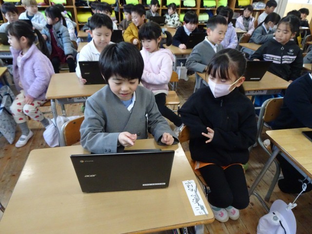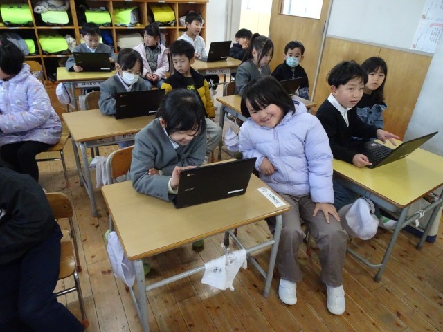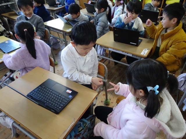 交流の時間には、1年生の音読を聞かせてもらったり、タブレットを使って一緒に陣取りをしたりと、仲良く活動することができました。